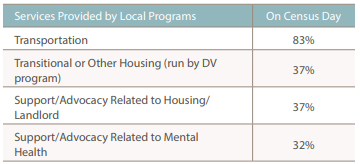Victims made nearly 210 requests for services— including emergency shelter, housing, transportation, childcare, legal representation, and more—that could not be provided because programs lacked the resources to meet victims’ needs. In the past year, 11 local programs in Georgia laid off or did not fill 28 staff positions. Most of these positions (62%) were direct service providers, such as shelter staff or legal advocates. This means that there were fewer advocates to answer calls for help or provide needed services.